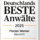 Florian Werner is a member of the Construction and Real Estate Law Practice Group of the German Bar Association (ARGE Baurecht) and a member of the Specialist Committee for Construction and Architects’ Law of the Hanseatic Bar Association of Hamburg.