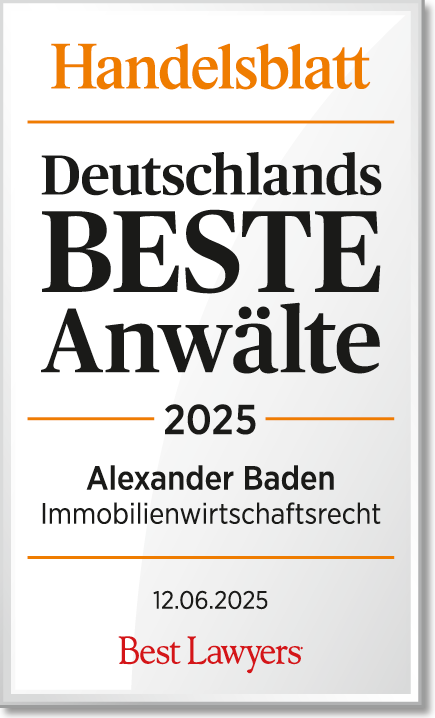 Im Rahmen des Rankings „Deutschlands beste Anwälte“, jährlich vom Handelsblatt und dem US-Verlag Best Lawyers erhoben, wird Alexander Baden seit Jahren wiederkehrend unter Deutschlands besten Wirtschaftsanwälten geführt.